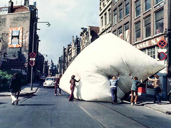 In the late 1960s, a new kind of inflatable fever caught the public imagination. Against the backdrop of the Cold War, widespread civil unrest unfolded in Europe and the USA. Artists and architects searched for alternatives to the existing political reality. New synthetic materials and inflatable media led to a new era of construction — from solid buildings to ephemeral structures, from durable art to temporal events – propagating a more fluid, nomadic vision of society.