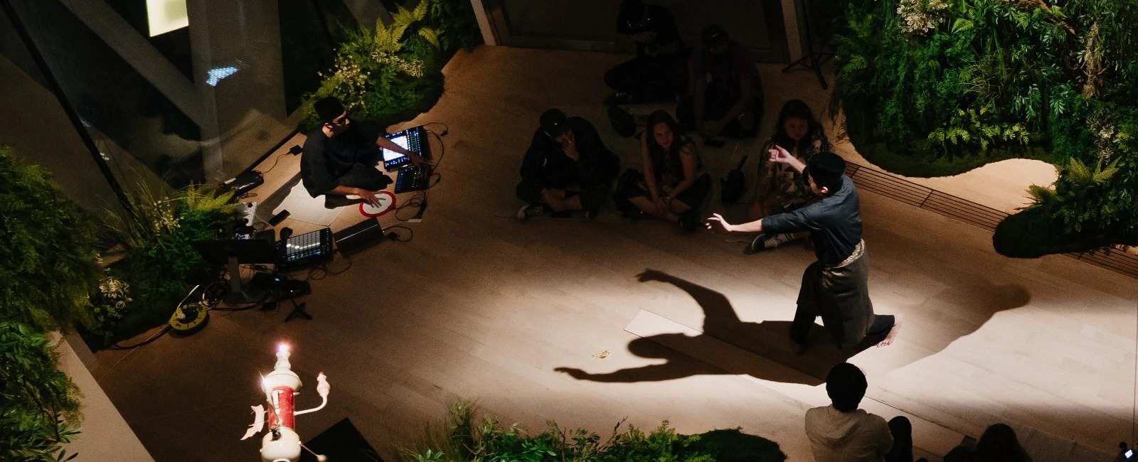 For one night only, sound and movement converge in a living ceremony. In this collaborative performance, sound artist Syafiq Halid activates his 14-channel installation in Another World Is Possible exhibition with the presence of dance artist Norhaizad Adam, extending his sonic philosophy into the moving body.