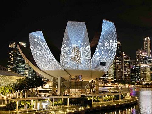 As part of i Light Marina Bay 2018, Hungarian 3D projection mapping artists Limelight will take over ArtScience Museum’s iconic façade from 9 March to 1 April, bringing it to life with their spectacular projection-mapping artwork, Evergreen.