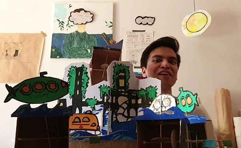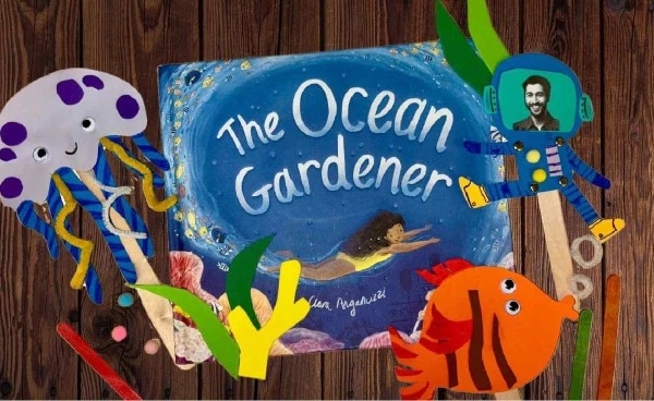 Participants can be inspired by the story of an ocean gardener who saves a coral reef and craft animal and human puppets who could live together in an Ocean City as imagined by Cesar.