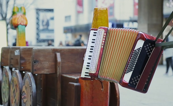 Traces (2015) is German artist Nevin Aladağ’s sound and image portrait of Stuttgart, the city where she spent her childhood. The artist has created a sonic mise-en-scène, where the various instruments she has collected are played by the city, rather than trained musicians. The result is an orchestra of only partially controlled instruments and sounds, where the natural and urban environment serve as both musician and stage.