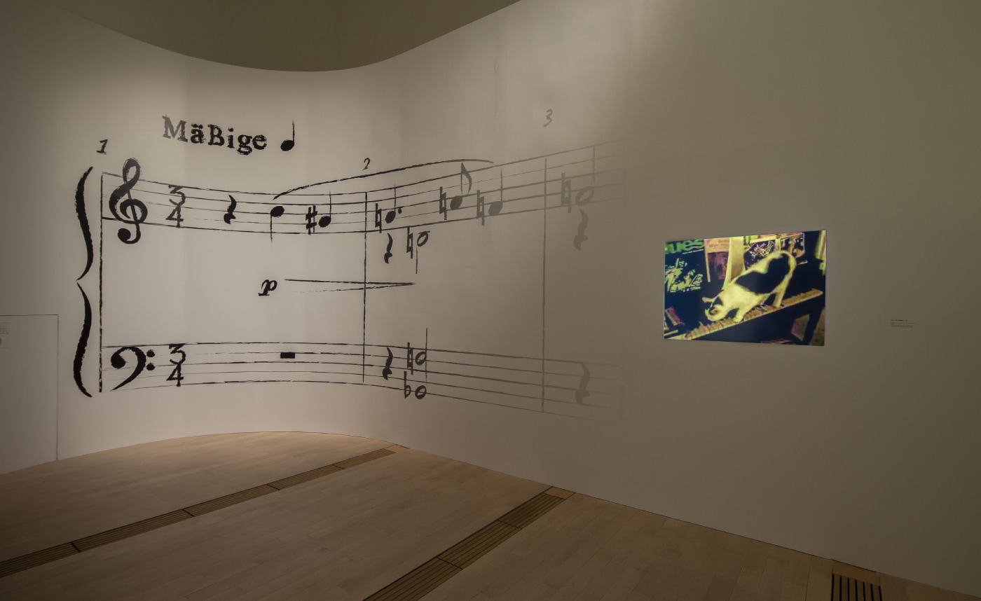 The walls in this gallery display just a few of bars from Schoenberg’s ground-breaking 1909 score. This fragment of Schoenberg’s notation serves as a visual reminder of the experimental work that he was engaged in alongside John Cage and Toshi Ichiyanagi.