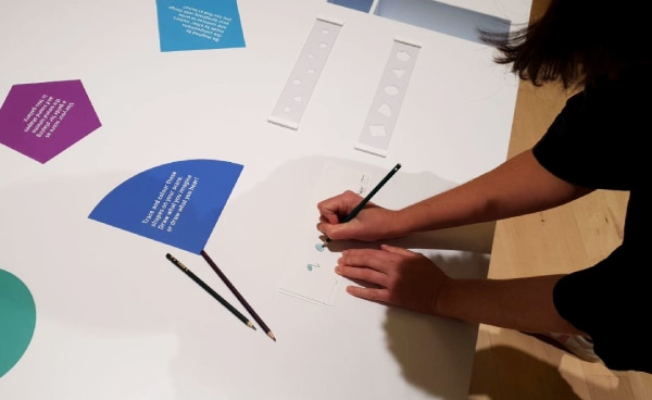 Here we encourage visitors to make their own graphic notations – the representation of music through the use of different images and symbols.