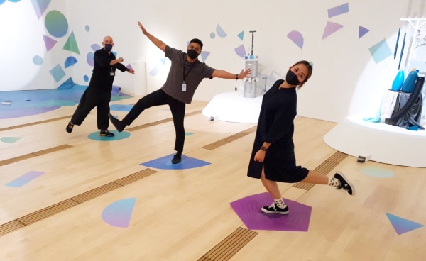 In this gallery are ‘sound totems’, a composing space, secret sounds, and a stage. Visitors are invited to press the sound totem pedals gently to make them play, and perhaps work together with other visitors to create an impromptu orchestra. Visitors can make their own compositions in the form of graphic music notation. Draw your own shapes to create your own written score, or use the stencils to compose musical ideas and place them on the wall for other visitors to interpret. Explore the colourful shapes on the floor and see what happens when you step in the centre. There is also a stage – The Stage is Yours. Visitors are welcome you to use the piano and/or the theremin, together (but socially distanced) or as a solo performance.