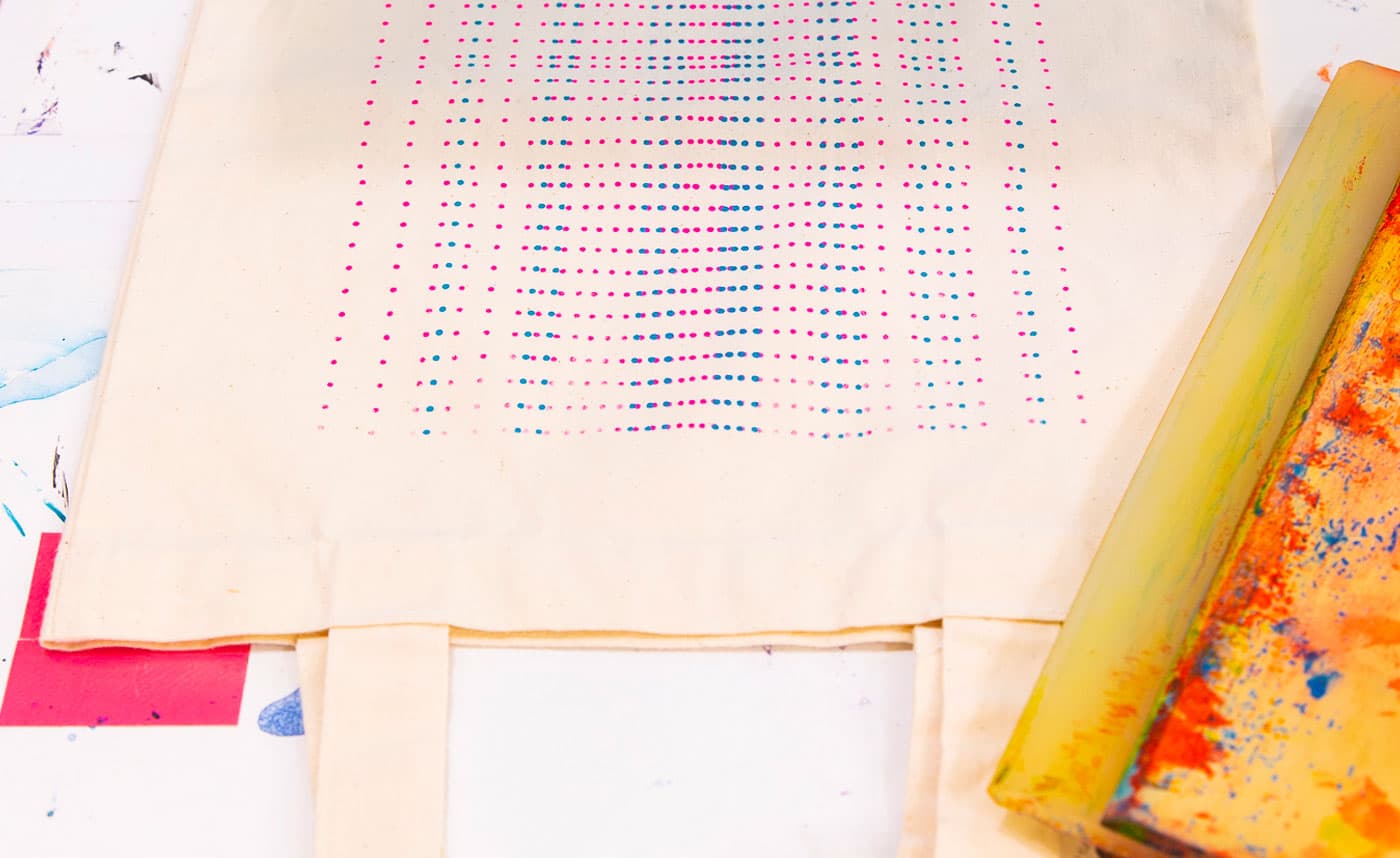 Getting hands-on with printing on tote bags.