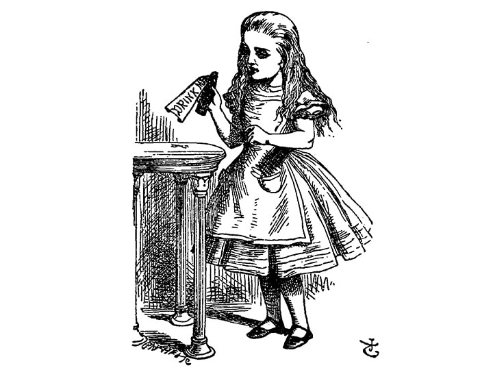 Alice’s curiosity came to symbolise the widest reaches of psychological possibility and imagination in the 1960s. Jefferson Airplane made metaphorical use of the story in their psychedelic paean to drug use. In response, the National Institute of Mental Health in the USA figured that Alice’s adventures in a trippy realm of heroin, speed, and a weed-smoking caterpillar could also deter children from experimenting with mind-altering substances.
