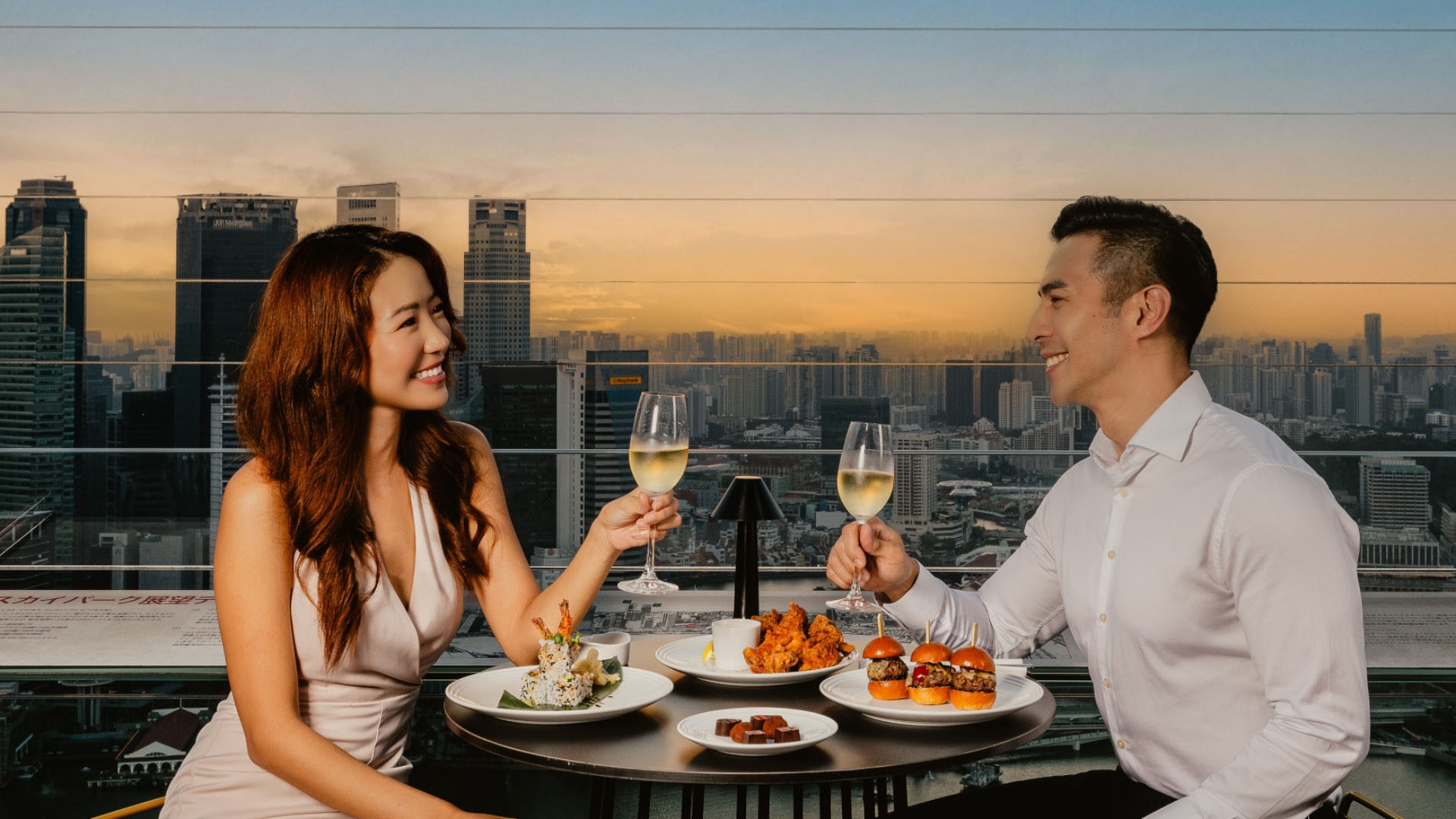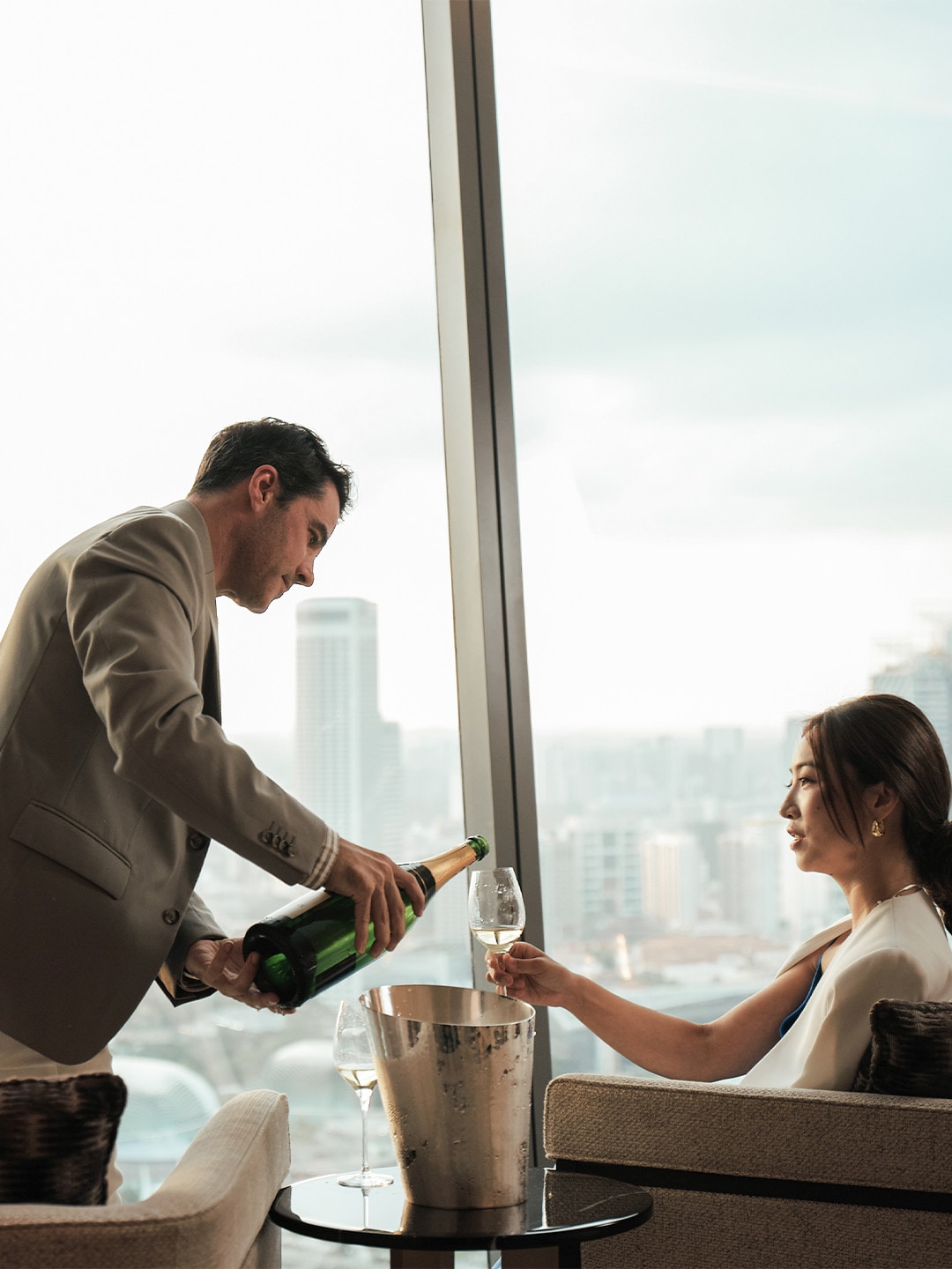 At sundown, admire Singapore from 56 storeys up in the heart of Marina Bay. Sip champagne as you take in breathtaking views of Gardens by the Bay and Singapore's iconic landmarks.