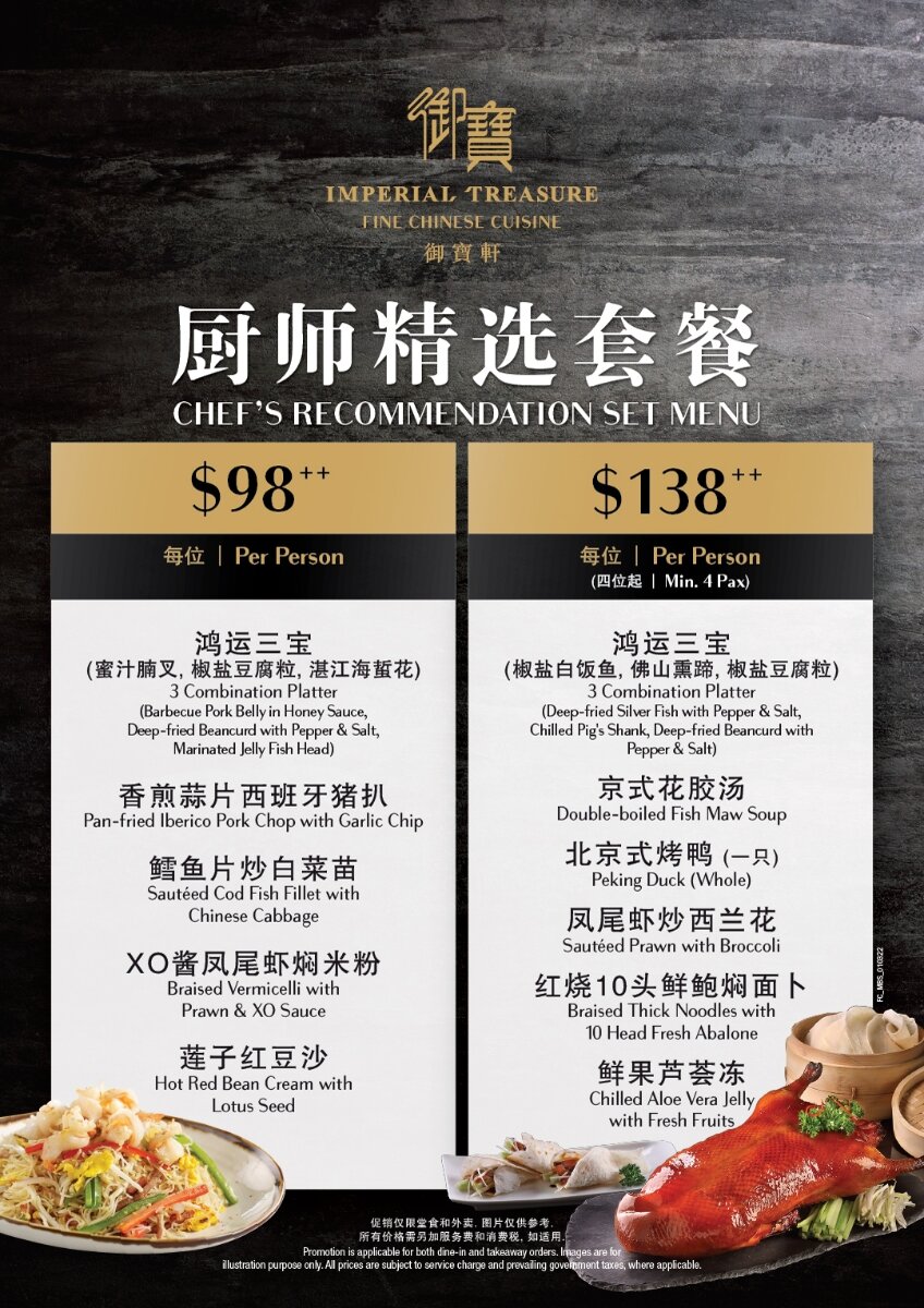 Signature dishes at this outlet include Australian Lobster Baked with Superior Broth, Canadian Geoduck Clam (Poached with Superior Broth), and Braised Bird’s Nest with Crab Meat.