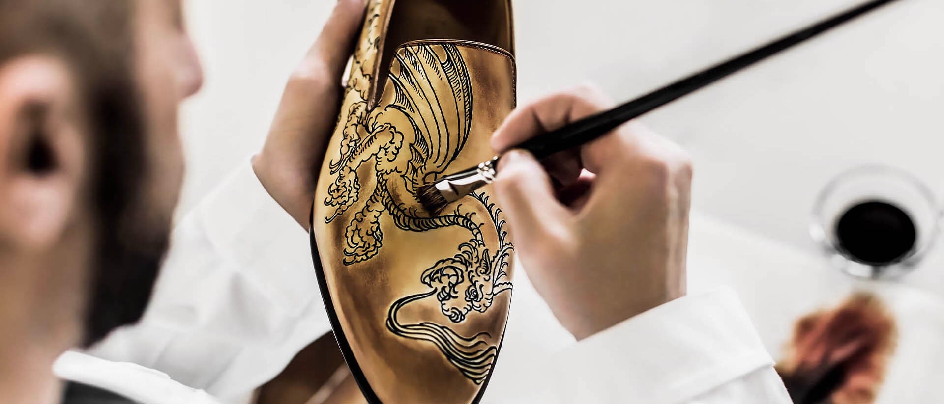 The hands of our shoemakers continue to craft exceptional and bespoke shoes. The hands of our tailors assemble outstanding clothing in pursuit of the absolute expression of elegance. Our creative studio imagines innovative collections: the shoe and leather goods designs are entirely crafted at our manufacture in Ferrara, Italy, while high-end craftsmen produce the ready-to-wear clothing.