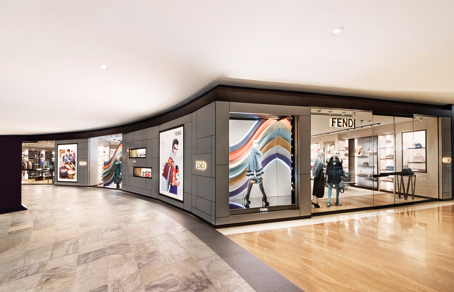 The house of FENDI was established by Adele and Edoardo Fendi in Rome in 1925. The opening of the first FENDI boutique – a handbag shop and fur workshop followed. Soon winning international acclaim, FENDI emerged as a brand renowned for its elegance, craftsmanship, innovation and style. The collaboration with Karl Lagerfeld began back in 1965 and in 1992 Silvia Venturini Fendi seconded him in the creative direction. In 1994 she is given responsibility of leather goods accessories and then the direction of the kidswear and menswear lines. In 2000 the LVMH Group acquires FENDI becoming in 2001 its majority shareholder. Today FENDI is synonymous with quality, tradition, experimentation and creativity.