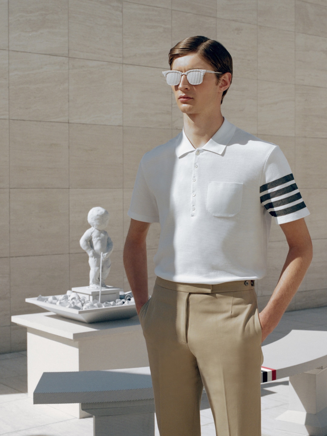 Thom Browne is widely recognized for challenging and modernizing today’s uniform: the suit. By questioning traditional proportions, Browne’s designs consistently convey a true American sensibility rooted in quality craftsmanship and precise tailoring.