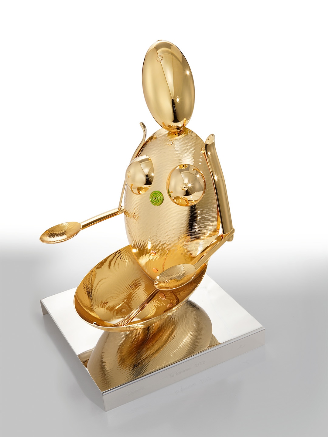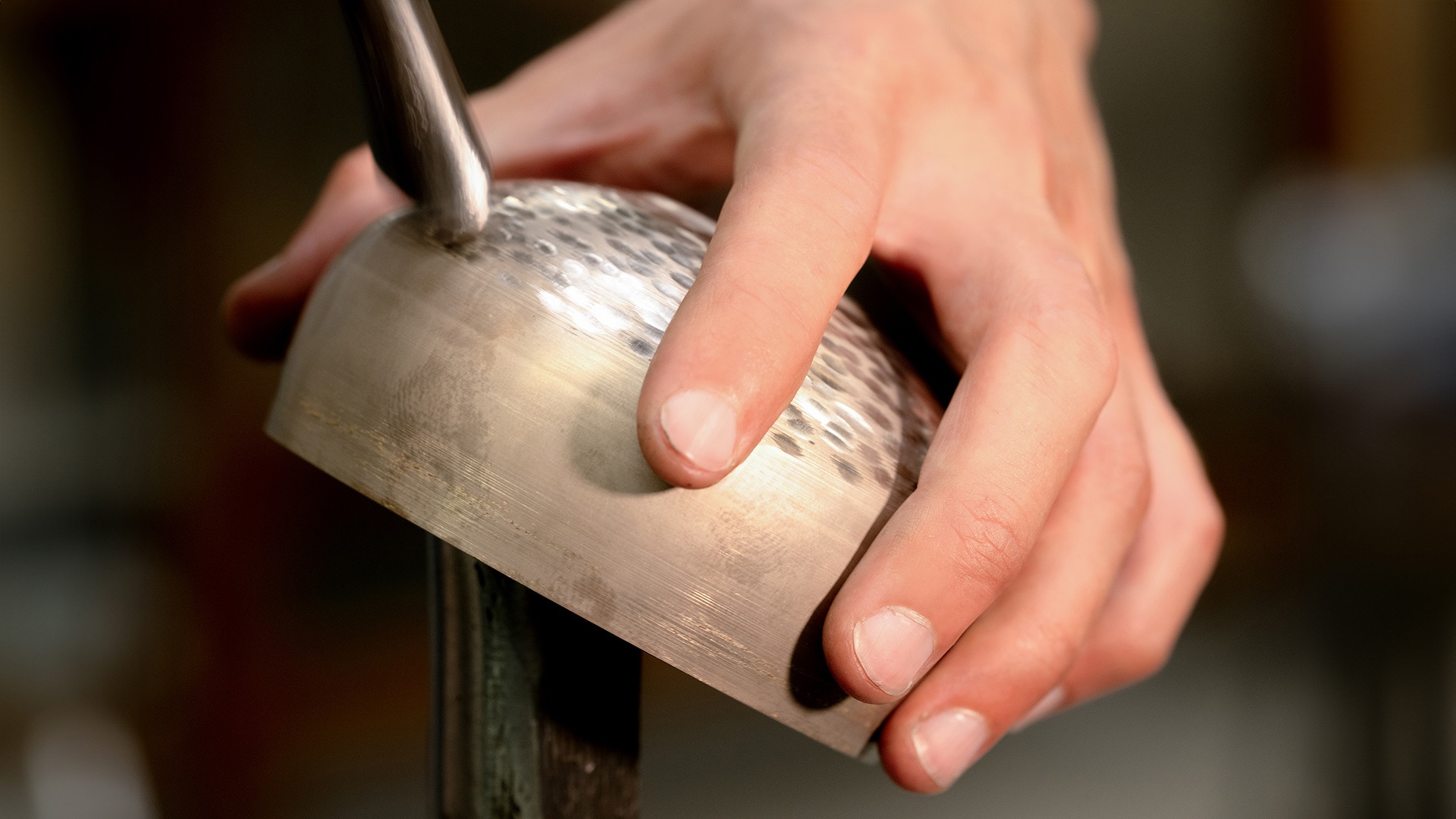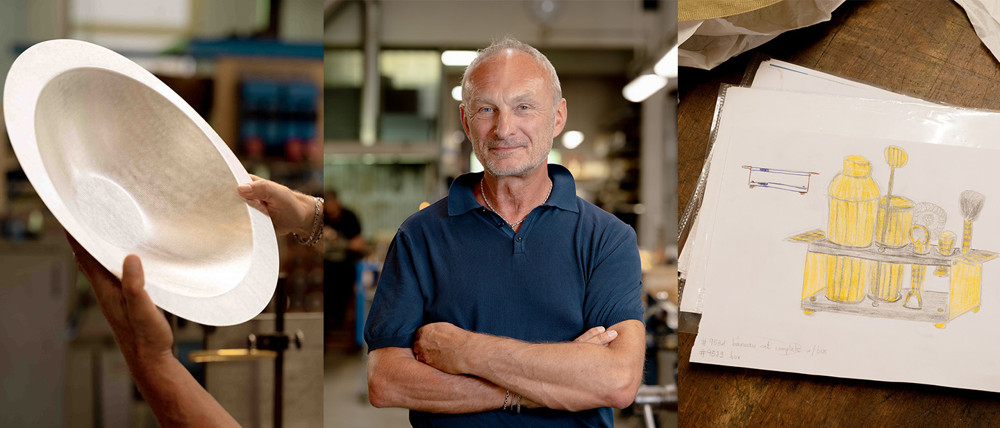 Today, under Bernardo’s son, Enrico, a team of 20 artisans (including Enrico’s son, Paolo) handcrafts exquisite objects in brass, copper, bronze, silver and gold, many of them featuring unusual surface finishes unique to Zanetto. “We produce objects with uniform shapes, perfect edges, completely smooth surfaces and uniformly thick silver plating,” says Enrico. The brand has also expanded its range to include jewellery, furniture and even art — La Femme, a sculpture of a stylised female form by Enrico, was admitted to the prestigious International Art Prize Biennale of Asolo.