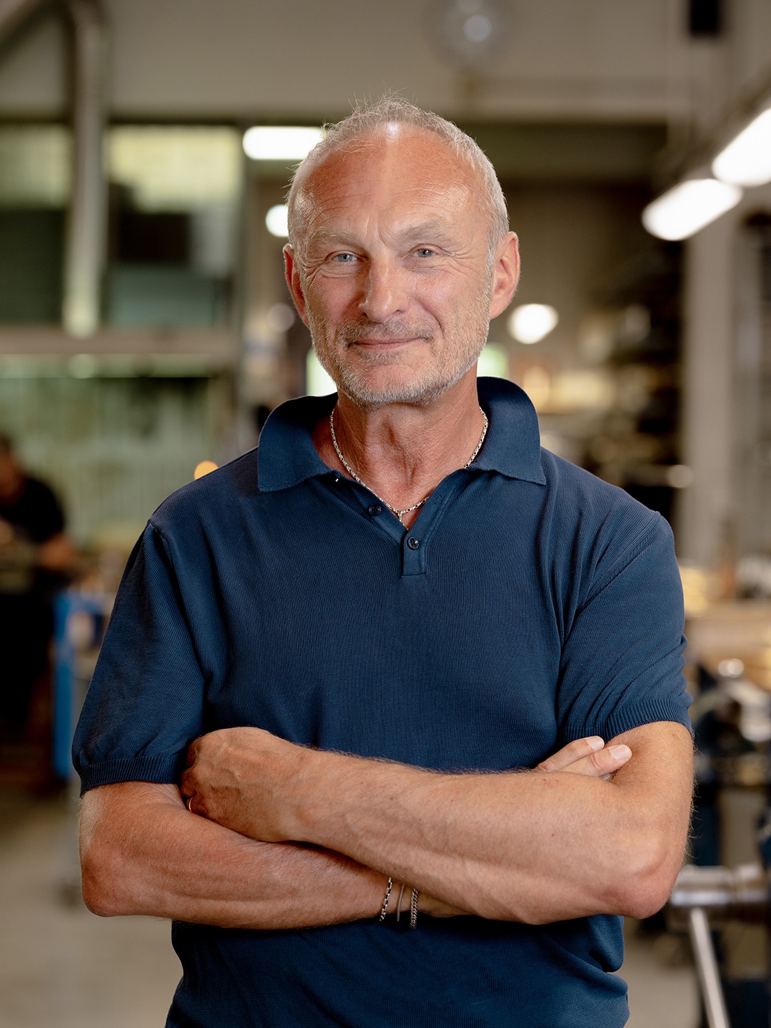Founded by Bernardo Zanetto in 1963, the brand still operates in its hometown of Padua, near Venice. Although less famous, Padua has a rich gold and silverwork tradition dating back to the Middle Ages, and it’s here that Bernardo gained recognition with his refined takes on everyday objects like vases, bowls and cutlery. By the 1970s, Zanetto had shifted to avant-garde designs, experimenting with metals and introducing hammered brass creations using tools made in-house.